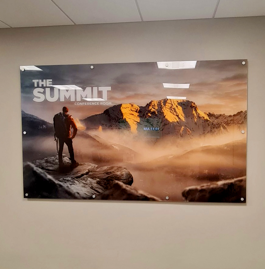 Acrylic mounted prints are an impressive way to display high quality images. Our 8-ink configuration Roland printer will print your colors with extreme accuracy and the crystal clear acrylic will add a sleekness to your print not present in other mounting methods.