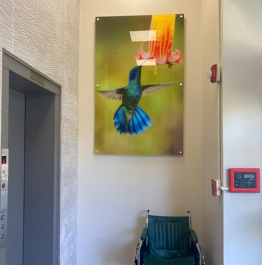 Zwanger - Pesiri transforms their locations by including colorful prints in creative ways, like splitting one image into three panels, or filling an empty wall with a stunning macro shot of a hummingbird.
